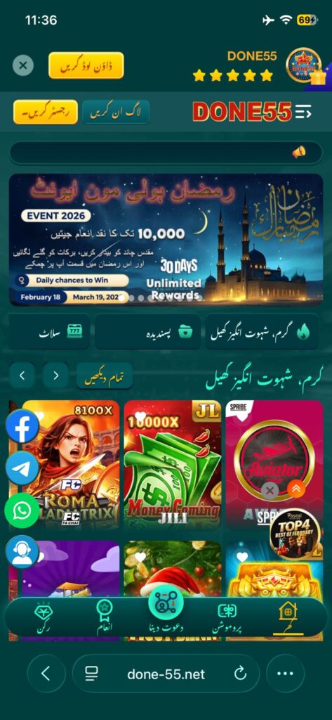 DONE55 Game is an Android-based real money gaming application that allows users to play various online games and earn rewards. It combines entertainment with earning potential by offering multiple mini-games within a single platform. The app is widely used by players in Pakistan due to its simple design and support for local payment methods.